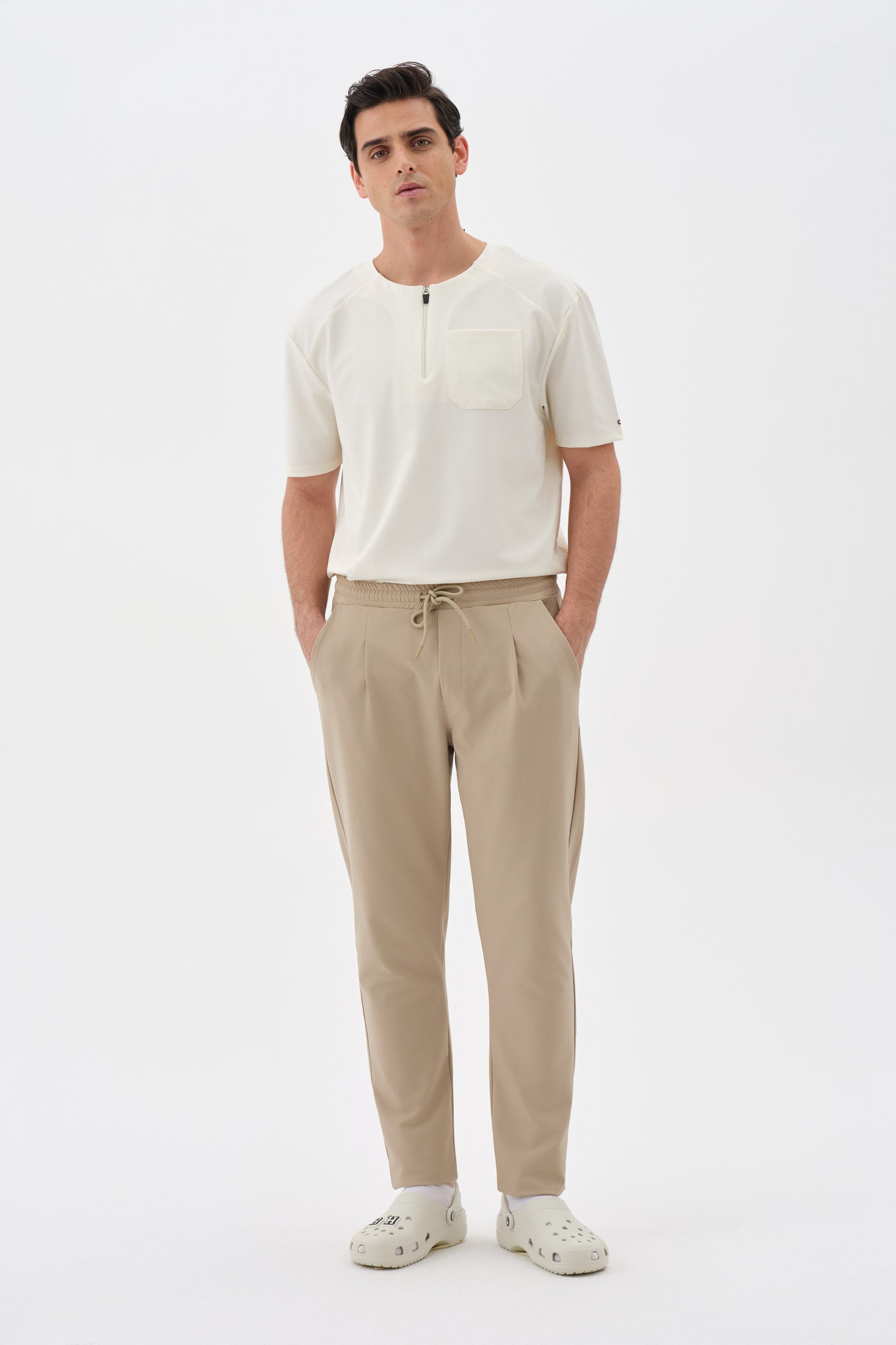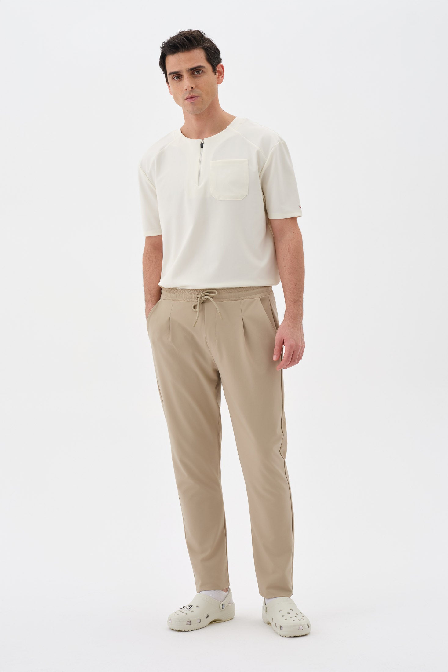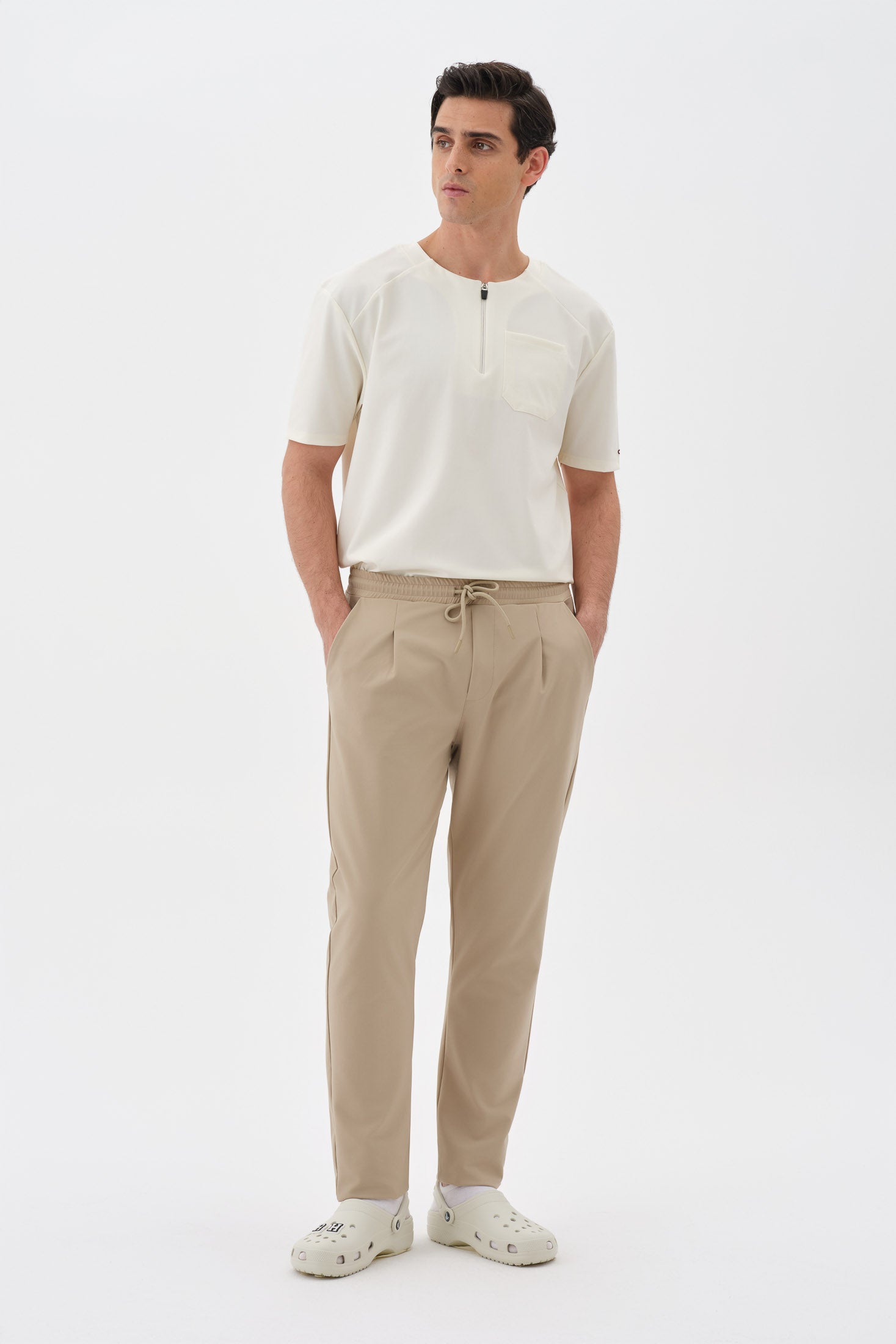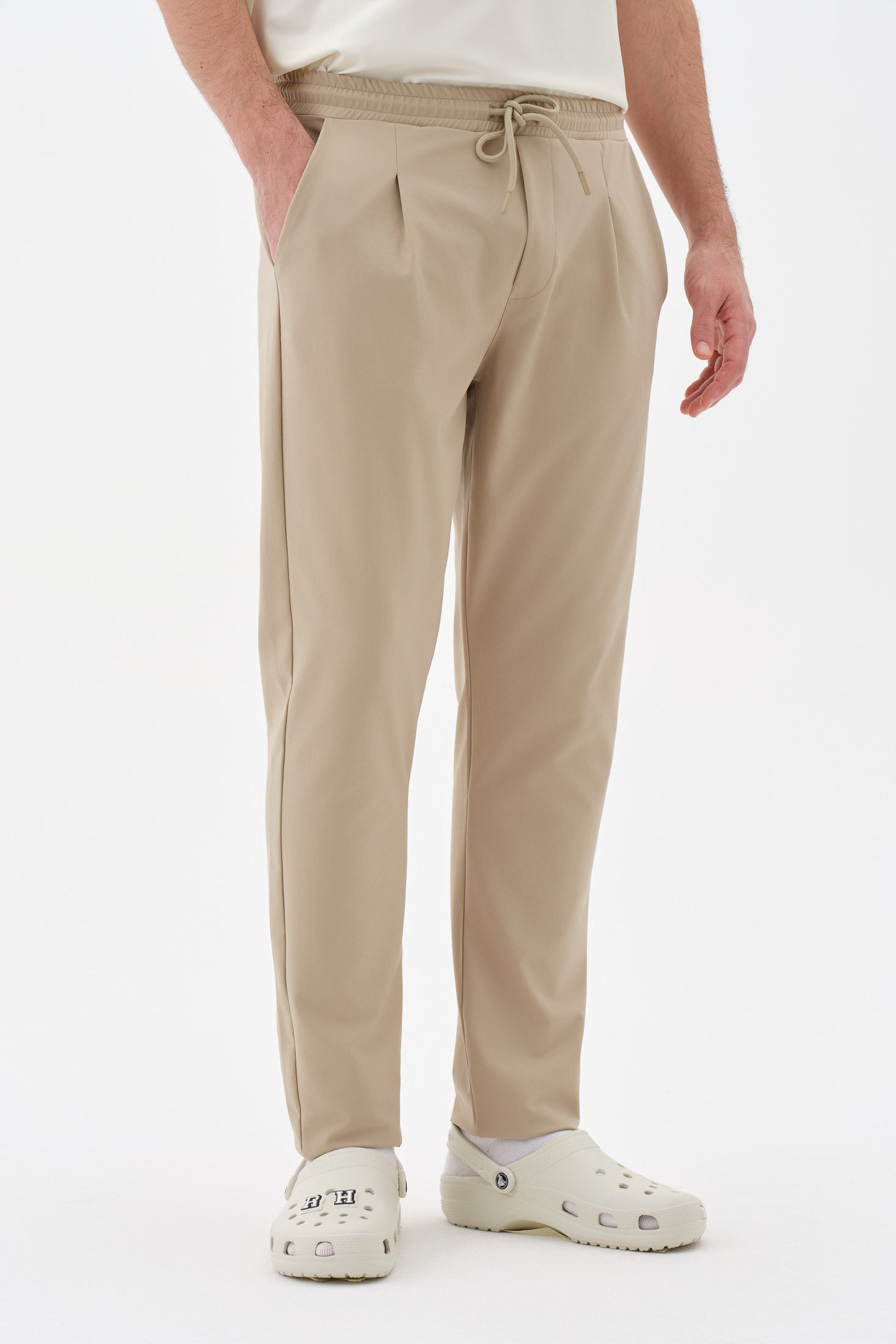 Gün boyu konfor ve profesyonel bir görünüm sunan tasarım. Ön bölümde yer alan pile detayları, oturup kalkarken veya hareket halindeyken ekstra rahatlık alanı sağlar. Düz paça kesimi, ayakkabı üzerine dökümlü durarak modern ve nizami bir silüet oluşturur. Bel kısmındaki lastik ve bağcık detayı, bedene tam uyum sağlayarak kaymayı önler.
