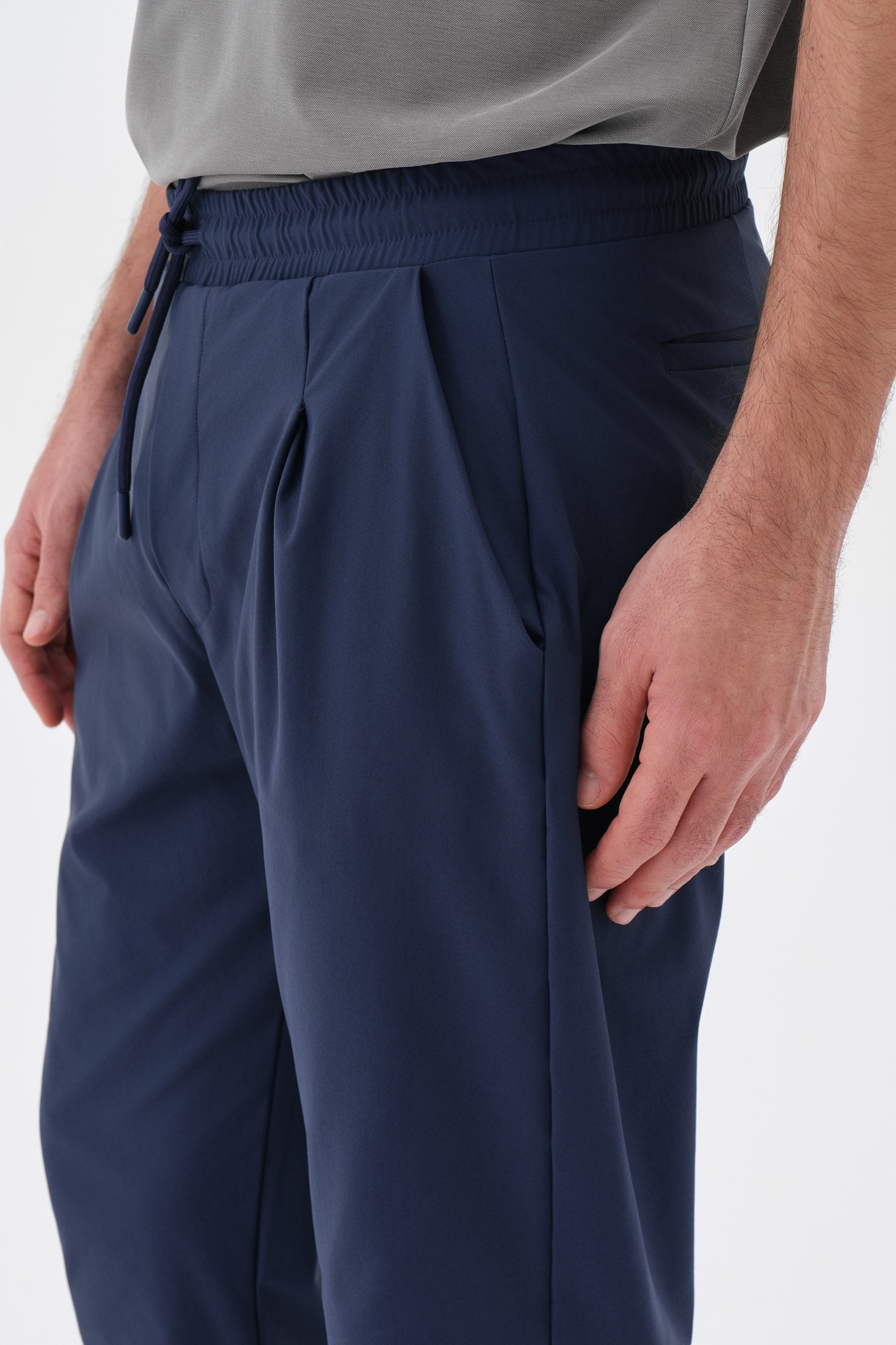 Gün boyu konfor ve profesyonel bir görünüm sunan tasarım. Ön bölümde yer alan pile detayları, oturup kalkarken veya hareket halindeyken ekstra rahatlık alanı sağlar. Düz paça kesimi, ayakkabı üzerine dökümlü durarak modern ve nizami bir silüet oluşturur. Bel kısmındaki lastik ve bağcık detayı, bedene tam uyum sağlayarak kaymayı önler.