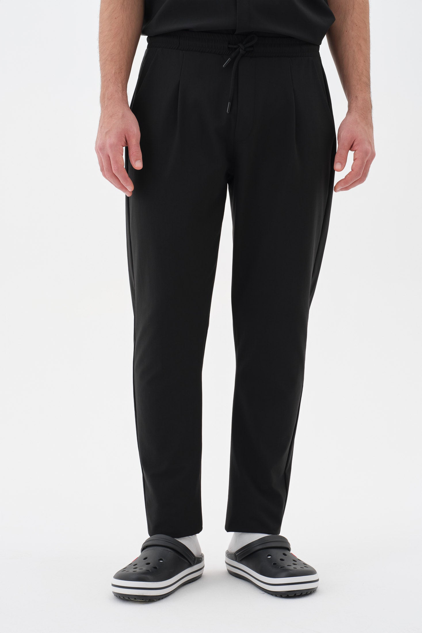 Gün boyu konfor ve profesyonel bir görünüm sunan tasarım. Ön bölümde yer alan pile detayları, oturup kalkarken veya hareket halindeyken ekstra rahatlık alanı sağlar. Düz paça kesimi, ayakkabı üzerine dökümlü durarak modern ve nizami bir silüet oluşturur. Bel kısmındaki lastik ve bağcık detayı, bedene tam uyum sağlayarak kaymayı önler.