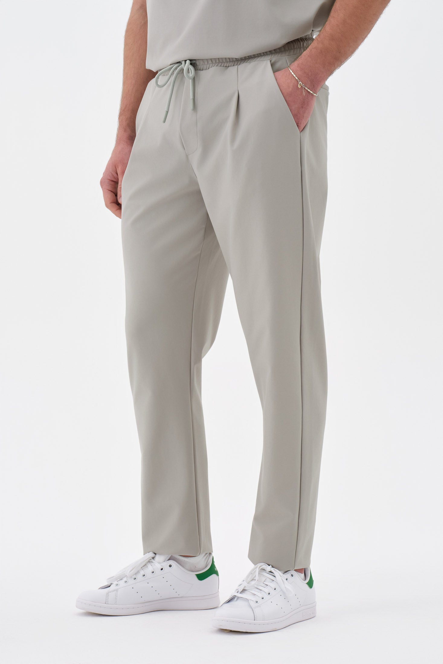 Gün boyu konfor ve profesyonel bir görünüm sunan tasarım. Ön bölümde yer alan pile detayları, oturup kalkarken veya hareket halindeyken ekstra rahatlık alanı sağlar. Düz paça kesimi, ayakkabı üzerine dökümlü durarak modern ve nizami bir silüet oluşturur. Bel kısmındaki lastik ve bağcık detayı, bedene tam uyum sağlayarak kaymayı önler.