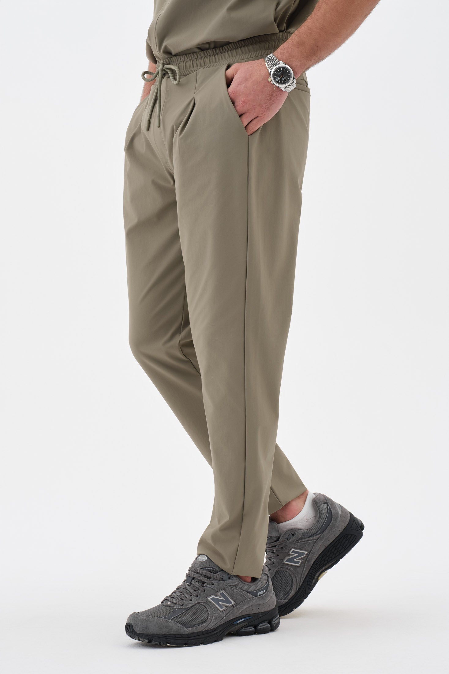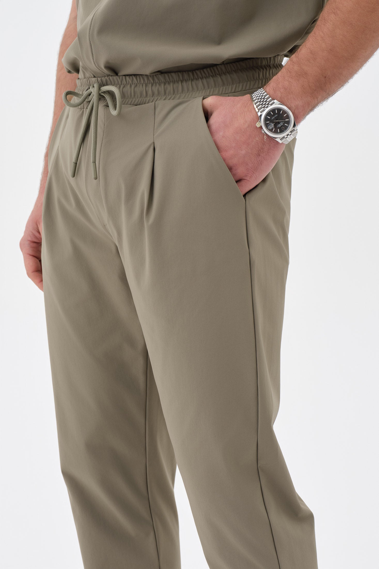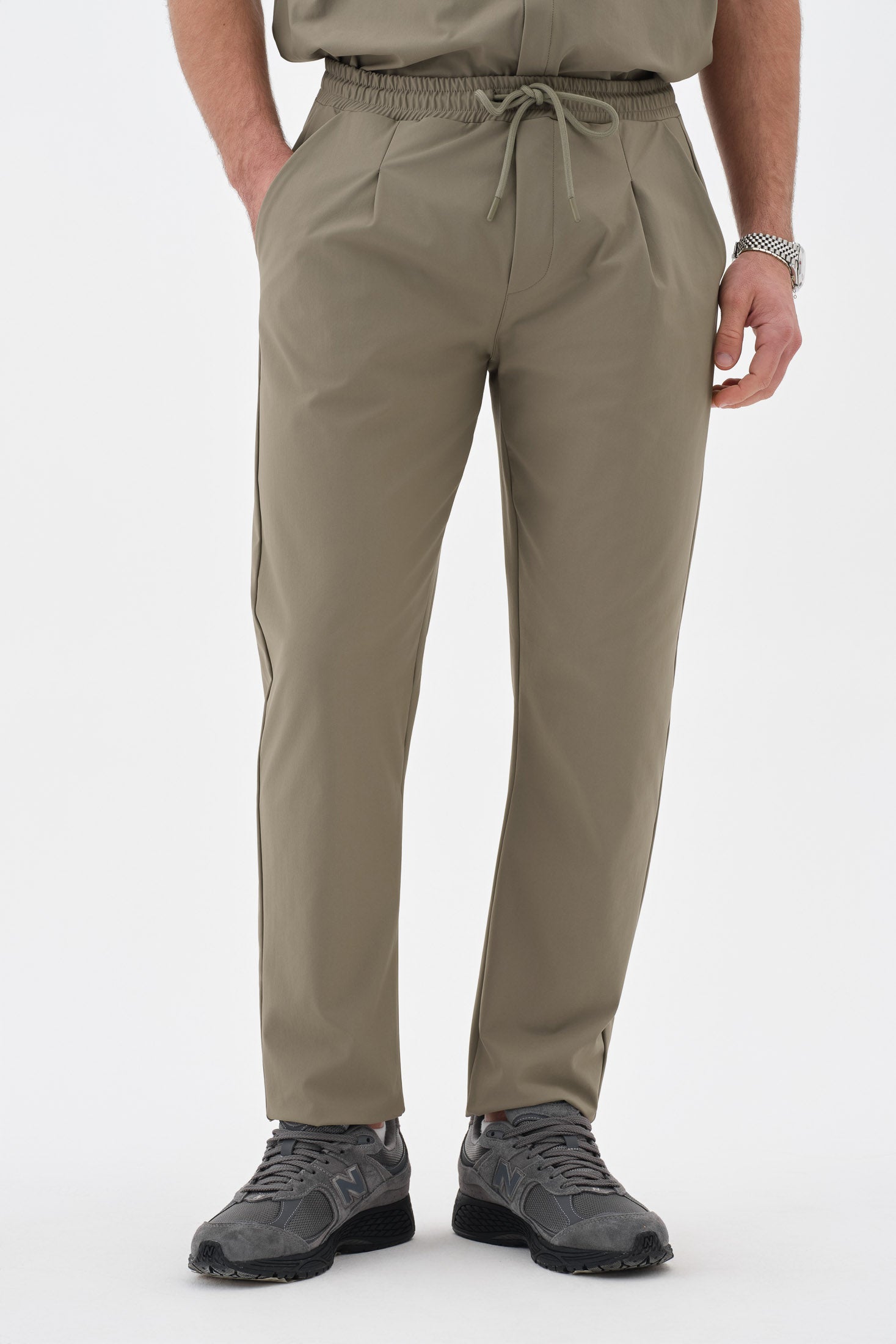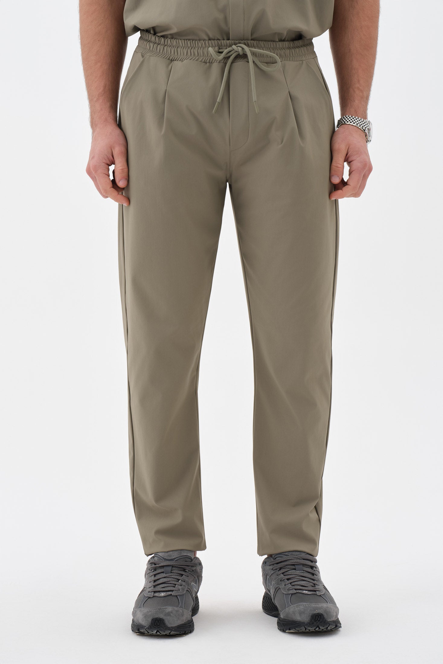 Gün boyu konfor ve profesyonel bir görünüm sunan tasarım. Ön bölümde yer alan pile detayları, oturup kalkarken veya hareket halindeyken ekstra rahatlık alanı sağlar. Düz paça kesimi, ayakkabı üzerine dökümlü durarak modern ve nizami bir silüet oluşturur. Bel kısmındaki lastik ve bağcık detayı, bedene tam uyum sağlayarak kaymayı önler.