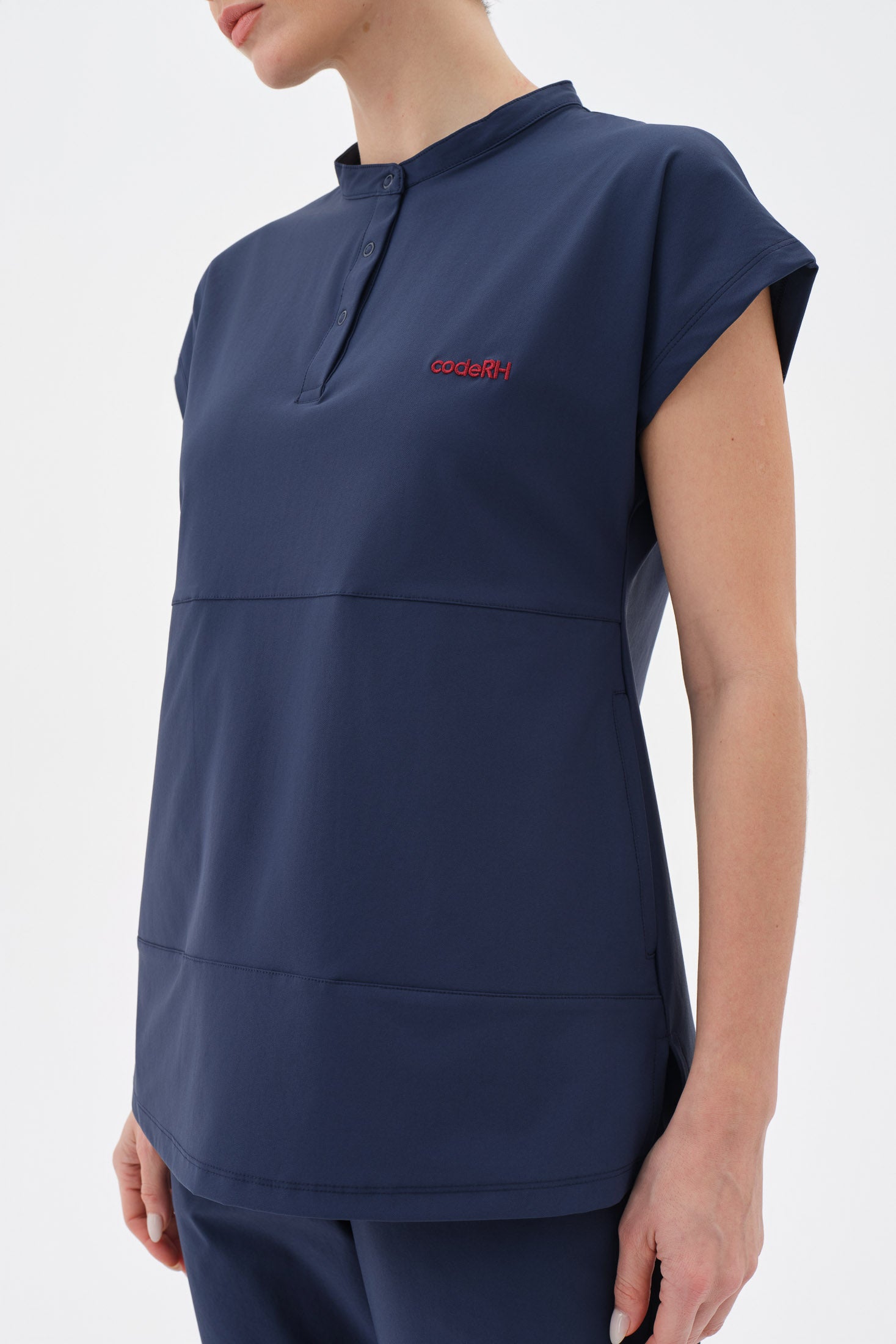Modern ve rahat kesimiyle öne çıkan fonksiyonel tasarım. Düşük omuz yapısı, hem şık bir silüet sunar hem de omuz ve kol hareketlerinde kısıtlamayı ortadan kaldırarak gün boyu konfor sağlar. Yaka kısmında bulunan çıtçıt detayları, pratik bir kullanım ve kolay giyip çıkarma imkanı sunarken ürünün modern tarzını tamamlar.