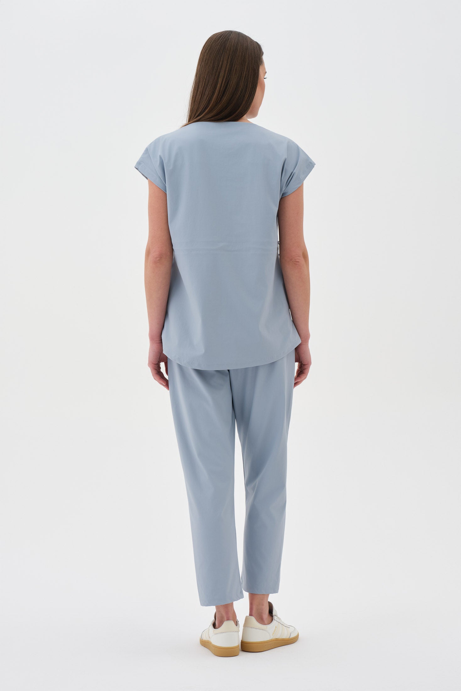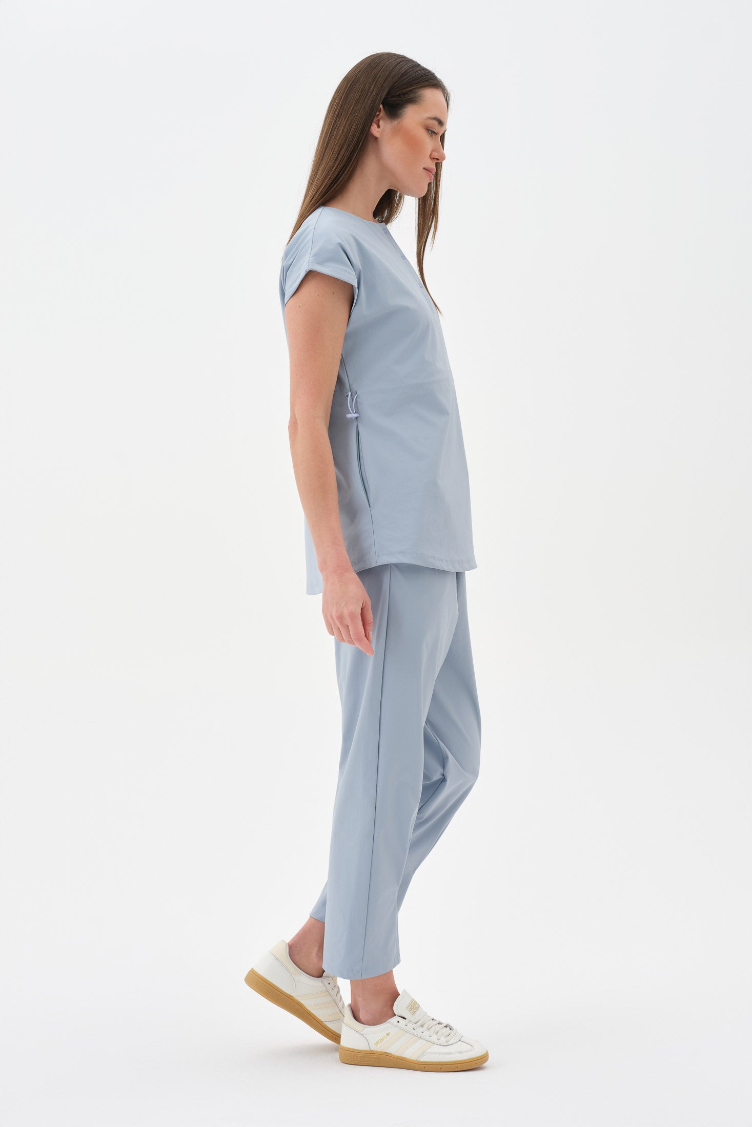 Kadın Beli Lastikli Kısa Kol Tshirt Buz Mavisi