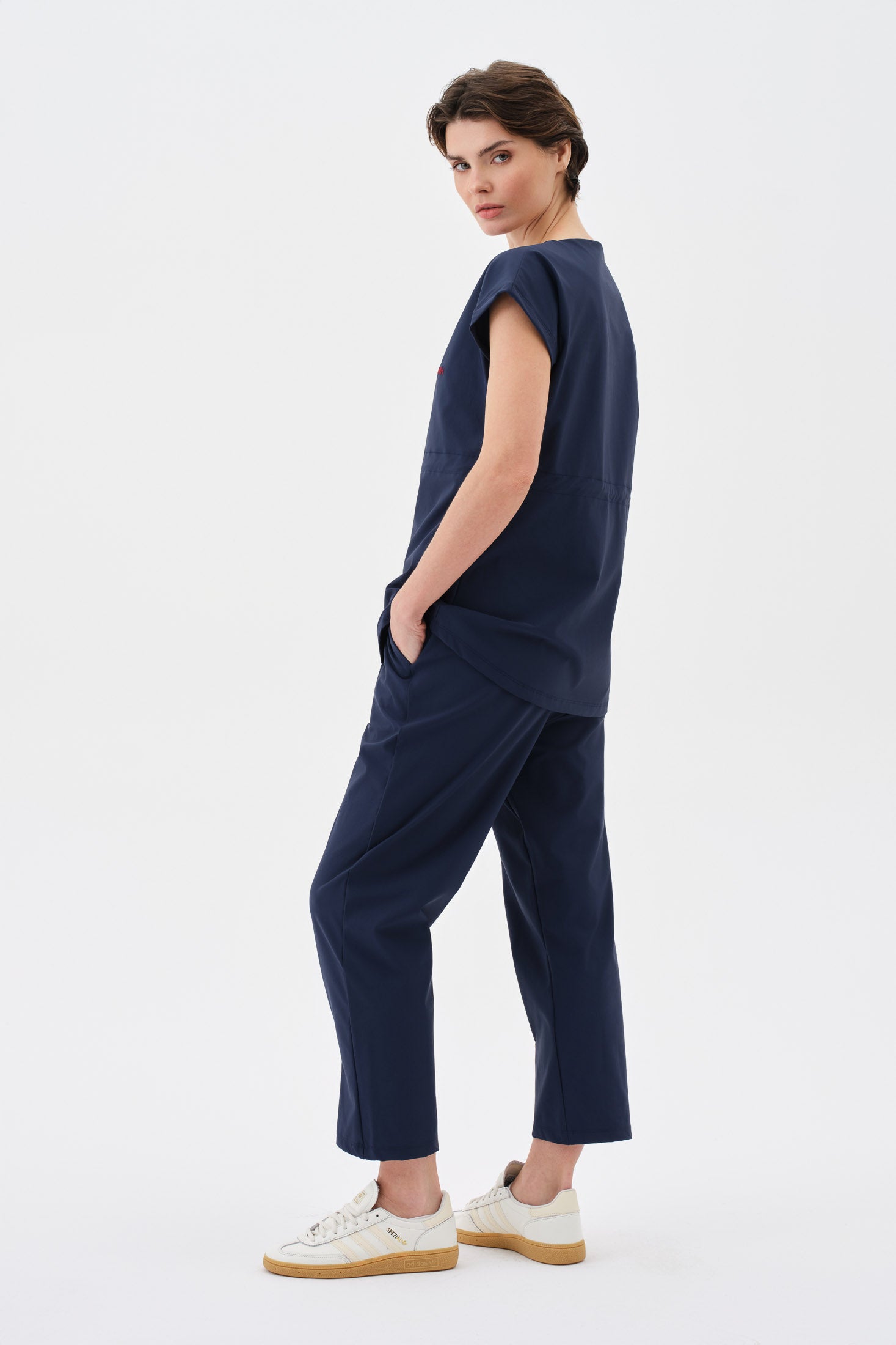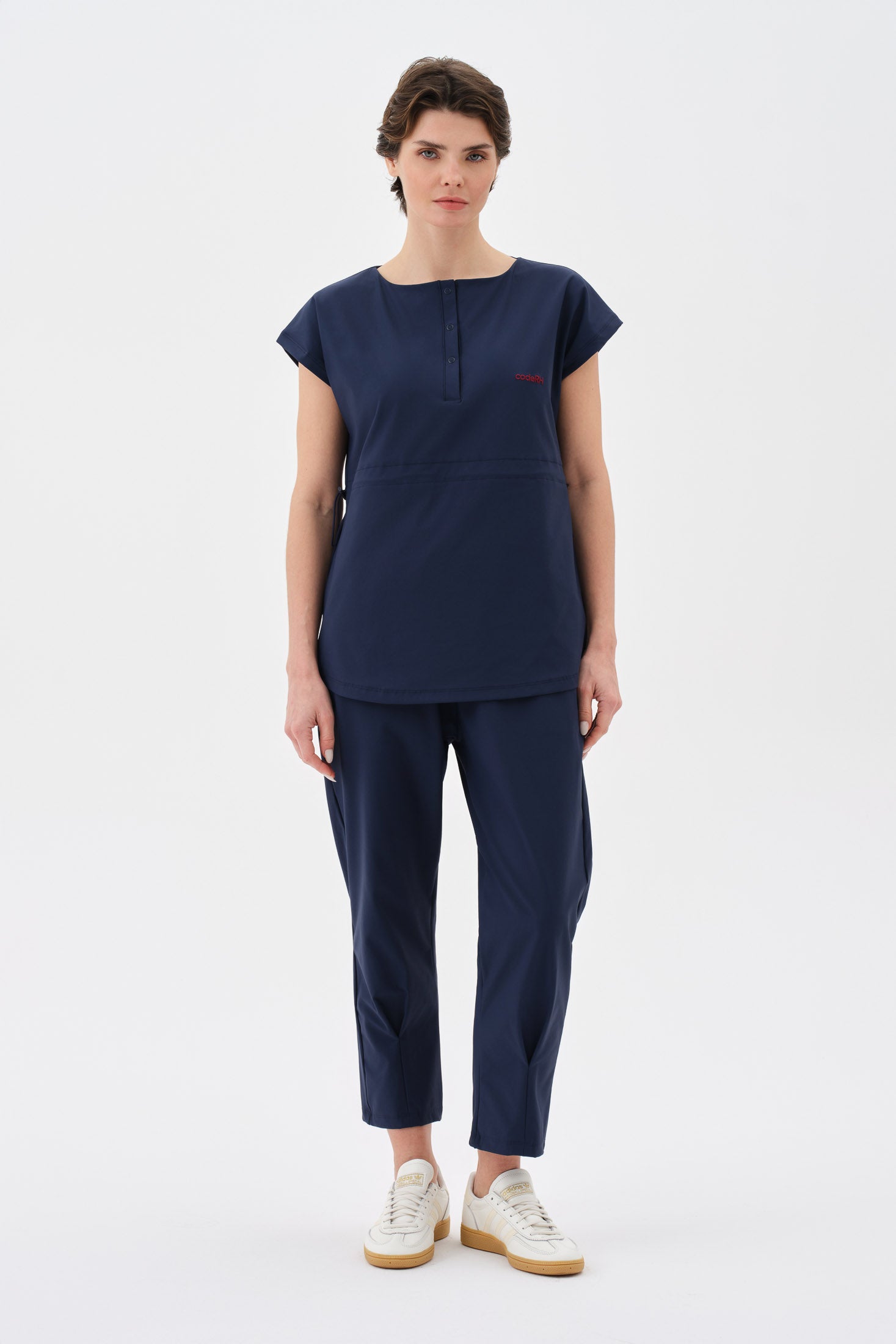 • Şıklığı ve fonksiyonelliği bir arada sunan modern tasarım. Yakada yer alan ayarlanabilir çıtçıt detayları, yaka genişliğini isteğe göre düzenleme imkânı sunarak hem zarif bir görünüm hem de kişisel konfor sağlar. Aynı zamanda giyip çıkarmayı kolaylaştırır. Rahat kesim kısa kol yapısı, omuz hareketlerini kısıtlamaz ve gün boyu ferah bir kullanım sunar.