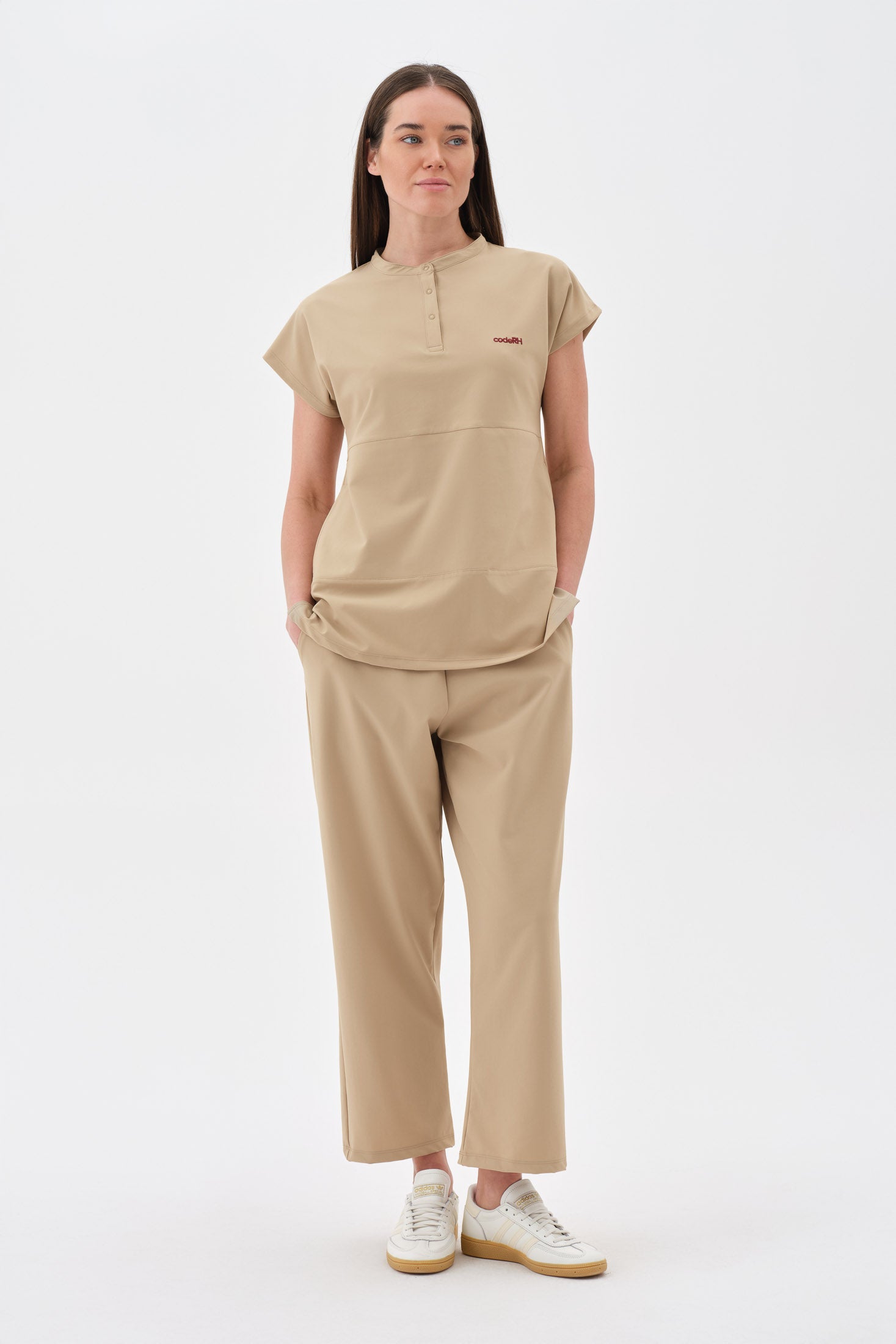 Modern ve rahat kesimiyle öne çıkan fonksiyonel tasarım. Düşük omuz yapısı, hem şık bir silüet sunar hem de omuz ve kol hareketlerinde kısıtlamayı ortadan kaldırarak gün boyu konfor sağlar. Yaka kısmında bulunan çıtçıt detayları, pratik bir kullanım ve kolay giyip çıkarma imkanı sunarken ürünün modern tarzını tamamlar.